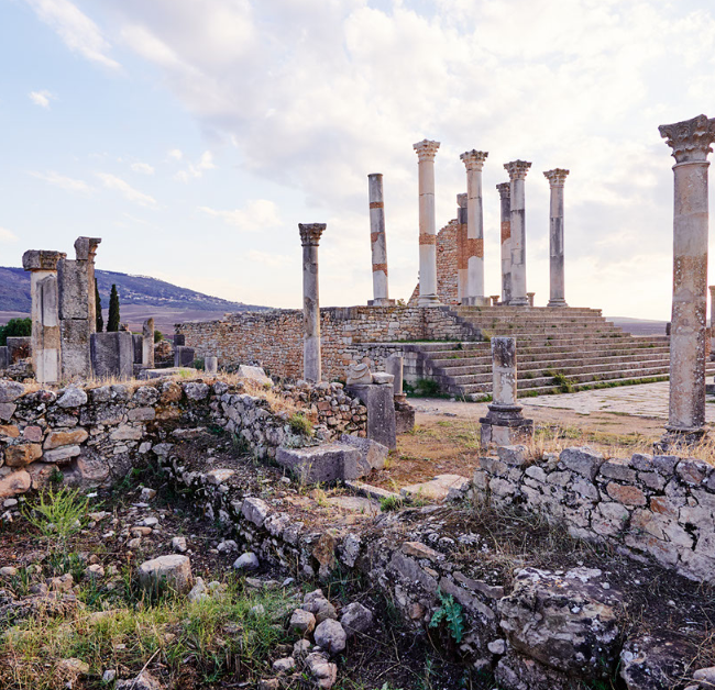 Get a guided tour of Morocco’s largest and Africa’s second-largest mosque, Hassan II. After this, you will be driven to Fez and will pass the cities of Meknes and Volubilis on the way. in Meknes, you will visit the historical sites such as the Royal stables, the Moulay Ismail Mausoleum, the beautiful gate Bab El Mansour, and the Mederssa Al Bouaanania, After Lunch, we will head to explore the ruins of the Roman empire in north Africa the archeological site of Volubilis, after visiting Volubilis we will continue our journey towards Fes for an Overnight.
